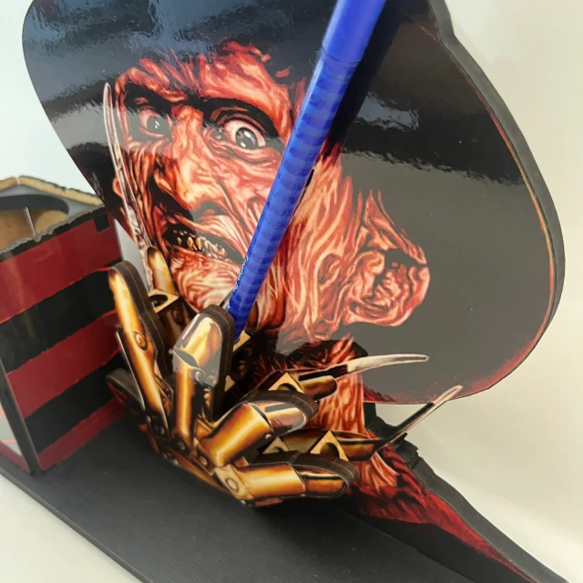 Transforme seu espaço com o Combo Freddy Krueger, que traz um MugPop exclusivo e um elegante porta objetos, ambos inspirados no icônico personagem de "A Nightmare on Elm Street".